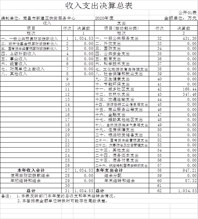 本部門2020年度財政撥款本年支出年初預算數為 1034.53 萬元,決算數為 947.21 萬元,完成年初預算的 91.56 %。其中: