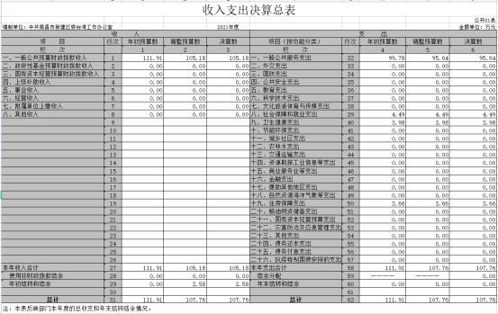 本部門2021年度財政撥款本年支出年初預算數為 111.91 萬元,決算數為107.76萬元,完成年初預算的96.29%。其中: