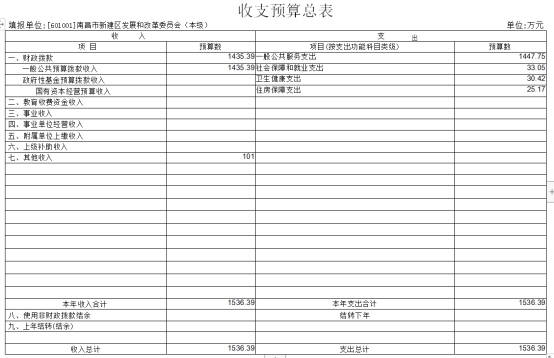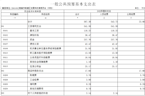 第二部分 南昌市新建區發展和改革委員會2022年單位預算表