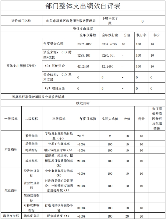 南昌市新建區(qū)政務(wù)服務(wù)數(shù)據(jù)管理局部門2022年度部門決算