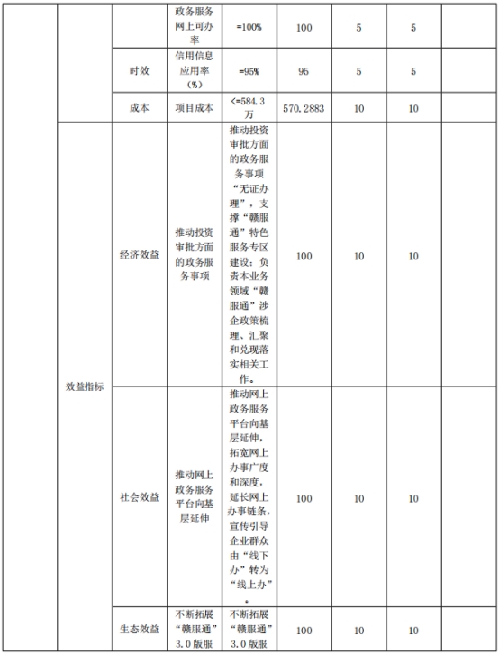 贛服通“新建分廳4.0”版建設(shè)項目績效自評綜述:為不斷完善提升“贛服通”服務(wù)功能,持續(xù)推進(jìn)平臺迭代升級,新建區(qū)政務(wù)服務(wù)數(shù)據(jù)管理局安排584.3萬元,用于贛服通“新建分廳4.0”版建設(shè)項目,主要用于建設(shè)“贛服通”4.0版新建區(qū)分廳和分廳后臺綜合管理系統(tǒng),建成以“贛服通”4.0版新建區(qū)分廳為主,各相關(guān)部門二級欄目為輔的綜合門戶app,完成三級等保測評并完成第三方軟件測試等工作。根據(jù)年初設(shè)定的績效目標(biāo),贛服通“新建分廳4.0”版建設(shè)項目績效自評得分為98分。項目全年預(yù)算數(shù)為584.3萬元,執(zhí)行數(shù)為584.3萬元,完成預(yù)算的100%。項目績效目標(biāo)完成情況:一是在預(yù)定時間內(nèi)完成“新建分廳4.0”版建設(shè)并宣傳推廣運用,保障線上APP正常運行;二是全面打通國家、省、市和區(qū)直相關(guān)部門自建系統(tǒng),打通數(shù)據(jù)堵點,擴(kuò)大網(wǎng)辦渠道,政務(wù)服務(wù)網(wǎng)上可辦率達(dá)100%,全程網(wǎng)辦率達(dá)90%以上。三是提高了網(wǎng)上辦件效率,提高企業(yè)開辦,辦證等效率,降低群眾辦事成本,提高了政務(wù)服務(wù)水平,營造了良好的營商環(huán)境。該項目服務(wù)對象是企業(yè)和群眾,目前企業(yè)滿意度92%,群眾滿意度 96%,滿意度較高。