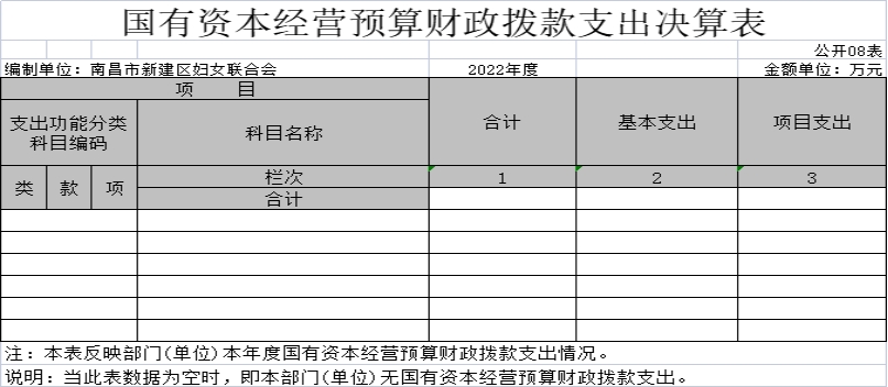 說明:當此表數據為空時,即本部門(單位)無相關資產。 |