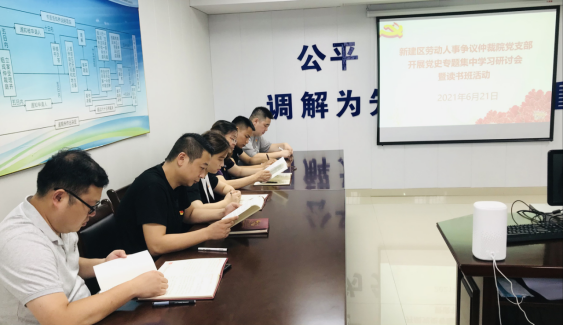 會上,組織全體黨員集中學習黨史相關書籍部分章節及觀看黨史專題片。隨后,與會人員結合自身學習及工作實際展開交流,紛紛表示,作為新時代調解仲裁黨員干部,要沉下心來,更細致、更深入地加強學習黨史,并把黨史學習教育同本職工作相結合,不斷加強黨性修養,堅定理想信念,筑牢思想防線,以更加飽滿的精神、更加昂揚的斗志、更加過硬的作風,有效踐行為民服務的宗旨,在接待來訪群眾和辦理各類勞動人事爭議案件工作中認真履職,依法高效妥善處理各類勞動人事矛盾糾紛,大力維護勞動人事關系和諧穩定,以優異成績喜迎建黨100周年。