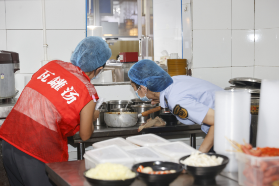 為了提升校園食品安全管理能力,工作人員還查看學(xué)校食堂環(huán)境衛(wèi)生狀況、設(shè)施配備、餐具消毒保潔等情況。同時(shí),認(rèn)真查閱食品原料標(biāo)識(shí)、用餐區(qū)是否有蟲(chóng)害、從業(yè)人員健康管理等臺(tái)賬記錄,并重點(diǎn)對(duì)食材儲(chǔ)存、食品加工制作、留樣管理等關(guān)鍵環(huán)節(jié)進(jìn)行了監(jiān)督檢查。