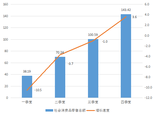 圖4:2020年分季度社會消費品零售總額及其增長速度