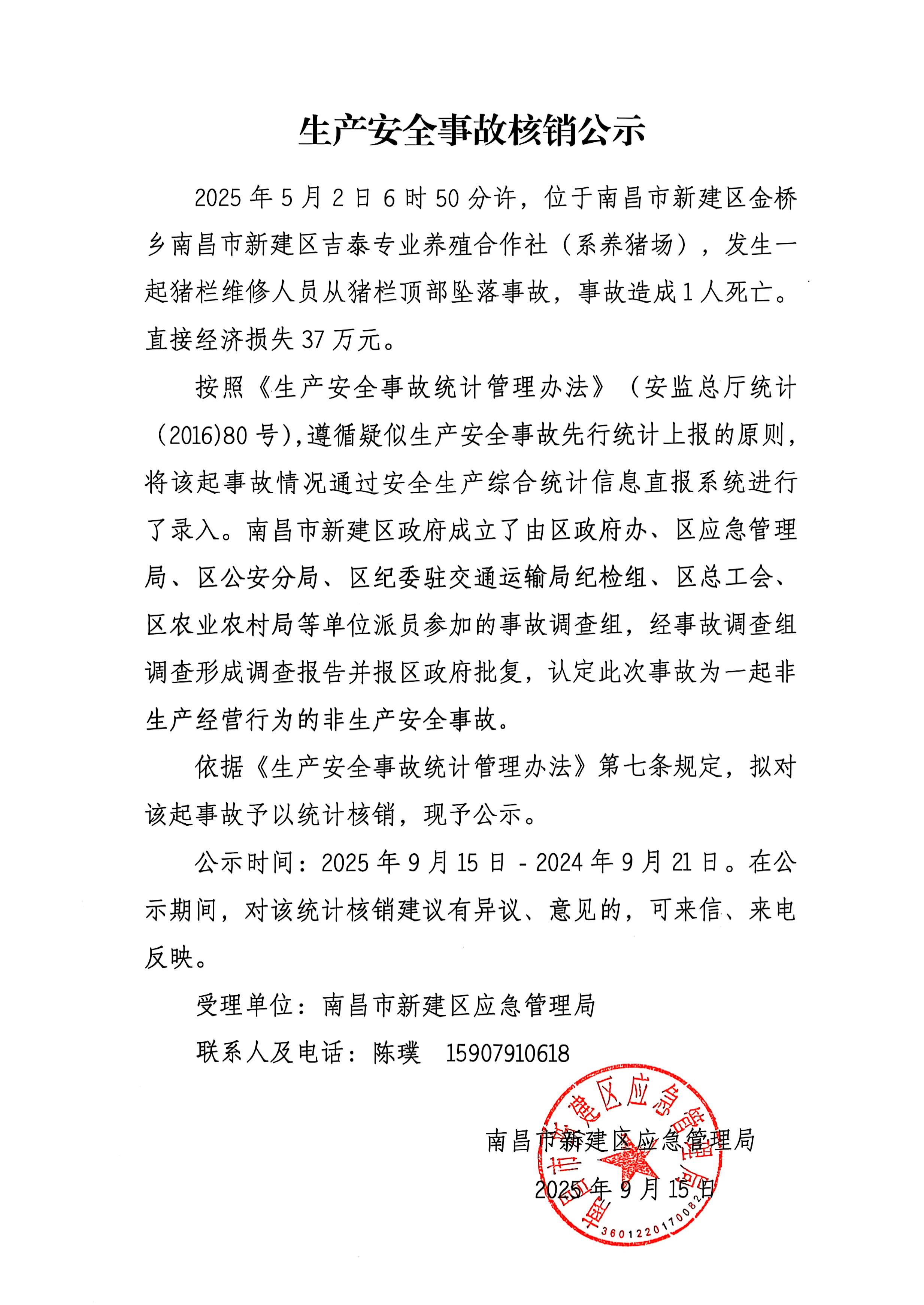 生產安全事故核銷公示20250915