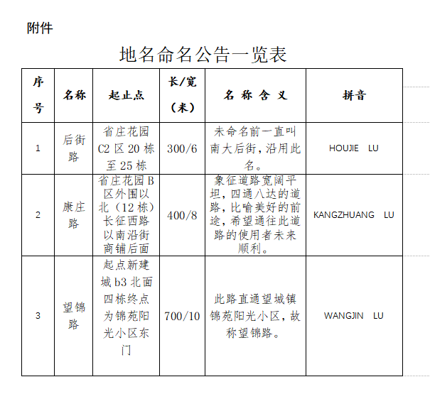 附件:地名命名公告一覽表