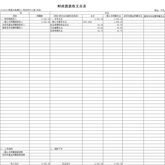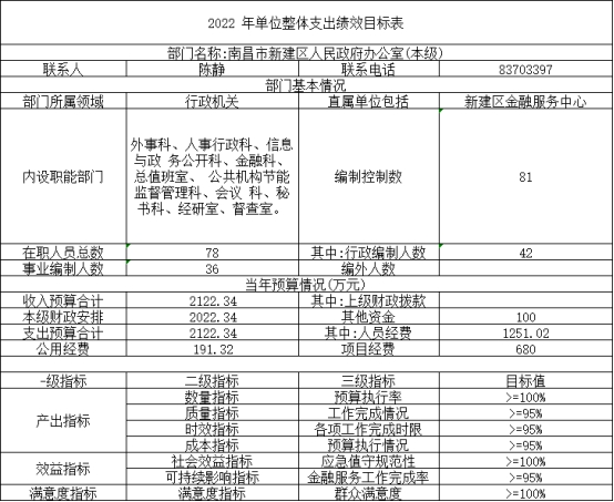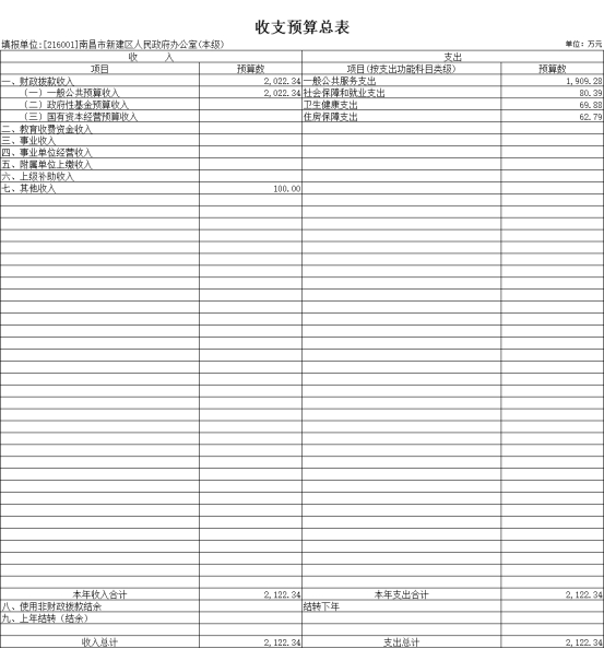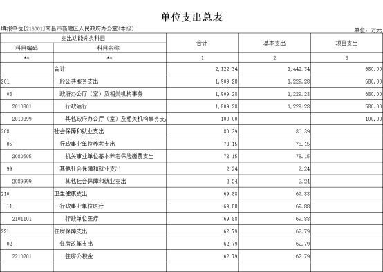 第二部分 南昌市新建區人民政府辦公室2022年單位預算表