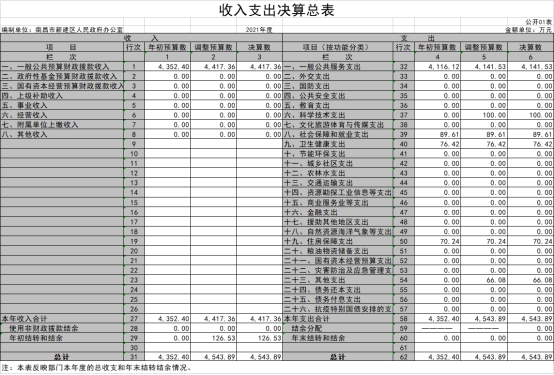 第二部分 南昌市新建區人民政府辦公室2021年度部門決算表