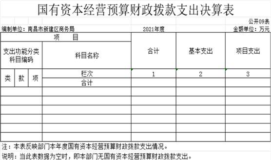 九、國有資本經營預算財政撥款支出決算表
