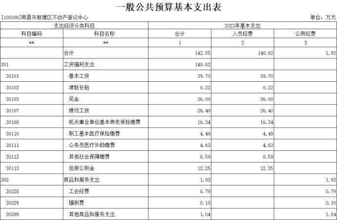 第三部分南昌市新建區不動產登記中心2023年部門預算表