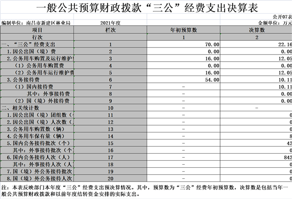 “三公”經費:反映財政撥款安排的因公出國(境)費、公務用車購置及運行費和公務接待費。其中,因公出國(境)費反映單位公務出國(境)的國際旅費、國外城市間交通費、住宿費、伙食費、培訓費、公雜費等支出;公務用車購置及運行費反映單位公務用車車輛購置支出(含車輛購置稅)及租用費、燃料費、維修費、過路過橋費、保險費、安全獎勵費用等支出;公務接待費反映單位按規定開支的各類公務接待(含外賓接待)支出。