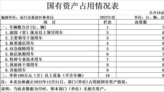 截止2022年12月31日,本單位國有資產占用情況見公開10表《國有資產占用情況表》。其中車輛中的其他用車主要是:執法執勤用車。