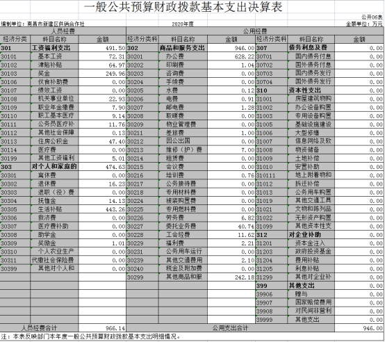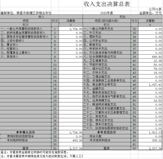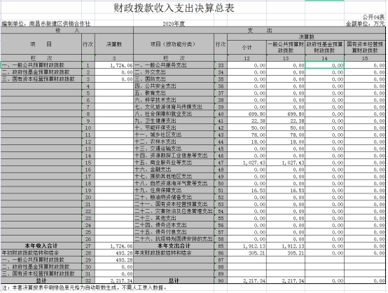 南昌市新建區供銷合作社部門2020年度部門決算