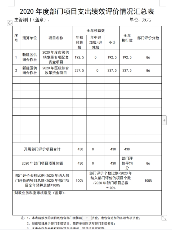 我部門今年在省級部門決算中反映2020年度市級供銷發展專項配套資金項目及2020年區級綜合改革資金項目目績效自評結果。