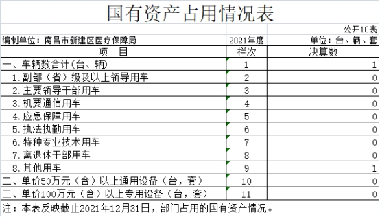 截止2021年12月31日,本部門(單位)國有資產占用情況見公開10表《國有資產占用情況表》。其中車輛中的其他用車1輛。主要是:無。