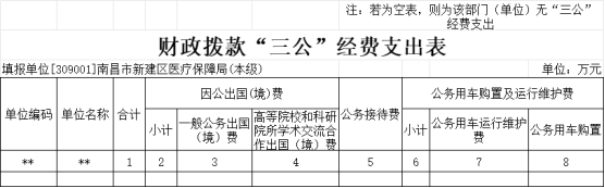 5、“三公”經費:指用財政撥款安排的因公出國(境)費、公務用車購置及運行維護費和公務接待費。其中,因公出國 (境)費反映單位公務出國(境)的國際旅費、國外城市間交通費、住宿費、伙食費、培訓費、公雜費等支出;公務用車購置及運行維護費反映單位公務用車車輛購置支出(含車輛購置稅、牌照費),按規定保留的公務用車燃料費、維修費、過橋過路費、保險費、安全獎勵費用等支出;公務接待費反映單位按規定開支的各類公務接待(含外賓接待)支出。