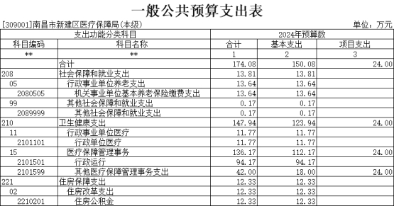 2024年醫療保障局財政撥款支出預算總額 174.08萬元,較上年預算安排減少19.64 萬元,下降了10.13%,主要原因是項目經費減少了。