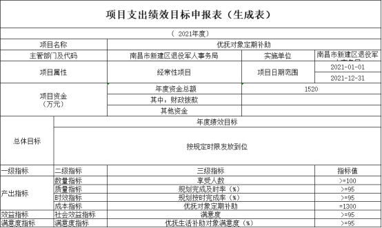 第三部分 南昌市新建區退役軍人事務局2021年部門預算表