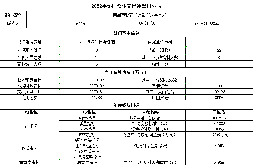 2022年南昌市新建區(qū)退役軍人事務(wù)局績效目標公開情況