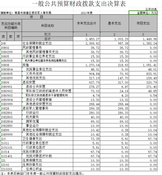 第二部分 新建區退役軍人事務局2021年度部門決算表