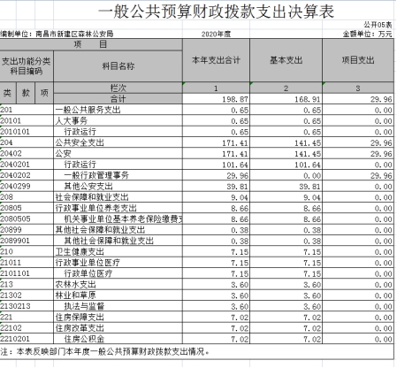 本部門2020年度支出總計 198.87萬元,其中本年支出合計 198.87萬元,較2019年減少 28.19萬元,下降15 %,主要原因是:……;年末結轉和結余33.48萬元,較2019年減少0.64萬元,下降2%,主要原因是:……。