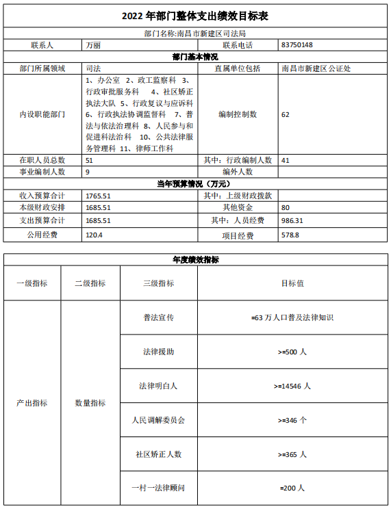 2022年新建區(qū)司法局績(jī)效目標(biāo)公開