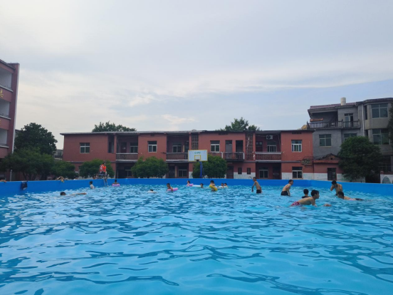 該游泳池采用PVC材質,池內水深80厘米,配備水循環凈化系統,同時,泳池也會定期換水、定期消毒,確保水質干凈。泳池四周設有防滑安全扶手,值班救生員全程值守,全方位守護孩子們的安全。“以前總擔心孩子去河邊玩水,現在能在安全的環境里學游泳,政府這項舉措太暖心了!”家長肖女士感慨道。
