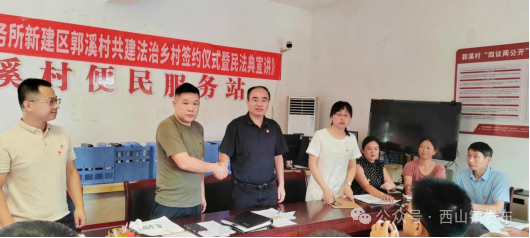為深入貫徹落實南昌市司法局《“城鄉結對”法律服務方案》,在鎮黨委統籌指導下,6月28日,郭溪村黨支部與江西贛商律師事務所黨支部在郭溪村黨群服務中心舉行 “法治鄉村”結對共建儀式。贛商律所黨支部書記王福春、郭溪村黨支部書記姜聲鵑、郭溪村黨員干部及村民代表、新建區城管局駐村干部、贛商律所和聯合友民律所部分黨員律師參加活動,共同見證這一助力鄉村振興的重要時刻。