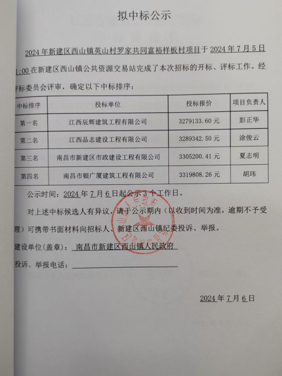 新建區(qū)西山鎮(zhèn)胡家梓塘村機(jī)耕橋改造工程項(xiàng)目招標(biāo)及中標(biāo)公示公告