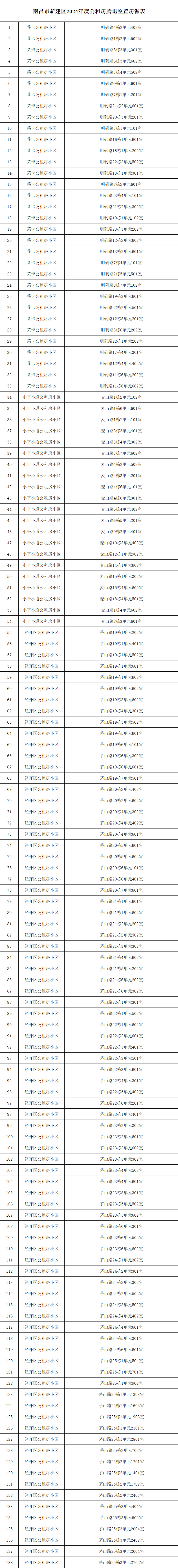 南昌市新建區(qū)2024年度公租房騰退空置房源表