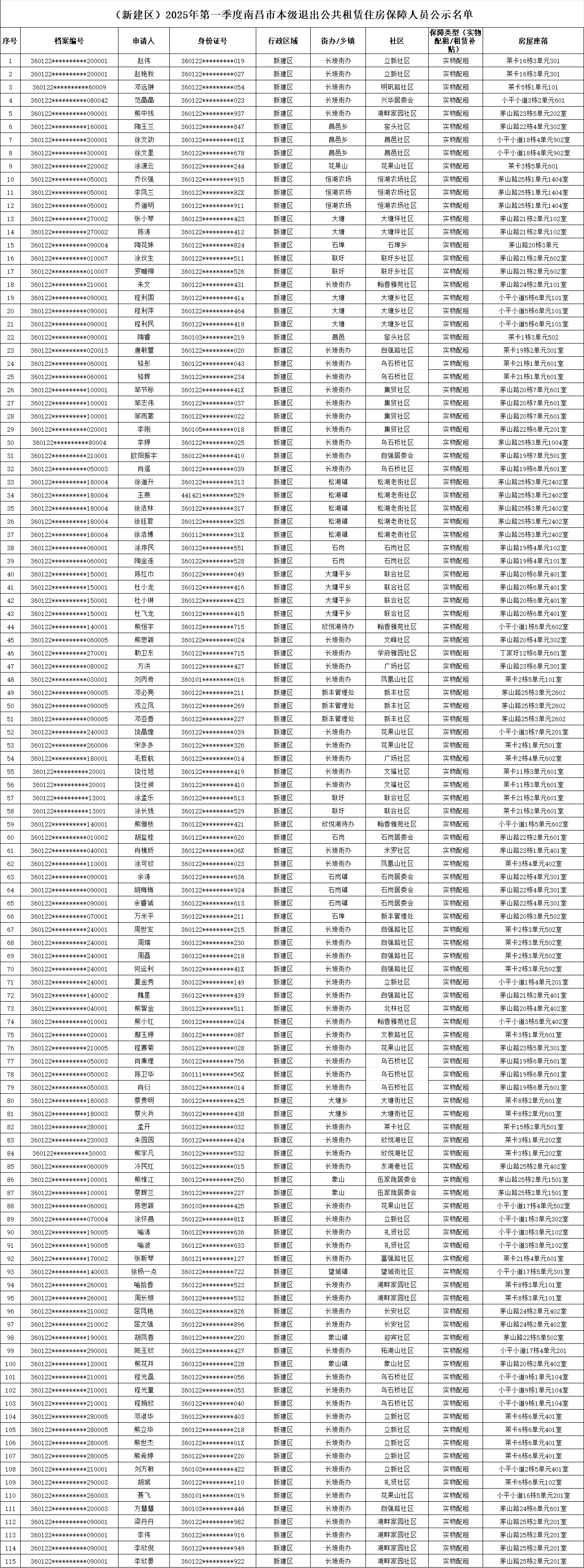 (新建區)2025年第一季度南昌市本級退出公共租賃住房保障人員公示名單